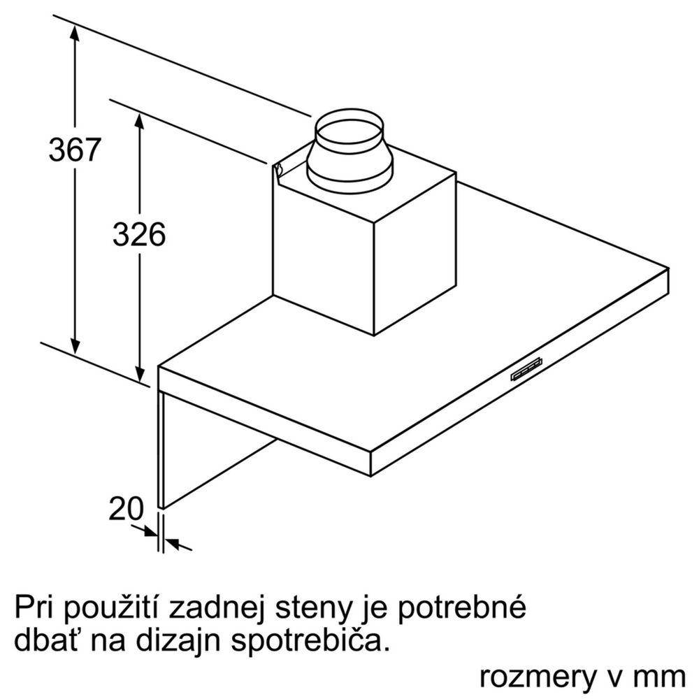 - rozmery spotrebiča pri cirkulácii s CleanAir Plus montážnou sadou (VxŠxH):