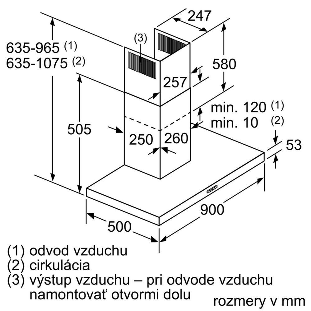 - rozmery pri recirkulácii (VxŠxH): 635-1075 x 900 x 500 mm