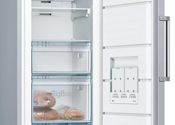 Ak chcete ušetriť pri skladovaní a mrazení potravín, tak skriňová mraznička Bosch GSN29VLEP je tým správnym riešením. Všetky jej funkcie sú prispôsobené tak, aby zužitkovali skutočne len potrebné množstvo energie bez jej zbytočného plytvania. Odmrazovanie sa realizuje automaticky, a to vďaka funkcii NoFrost.