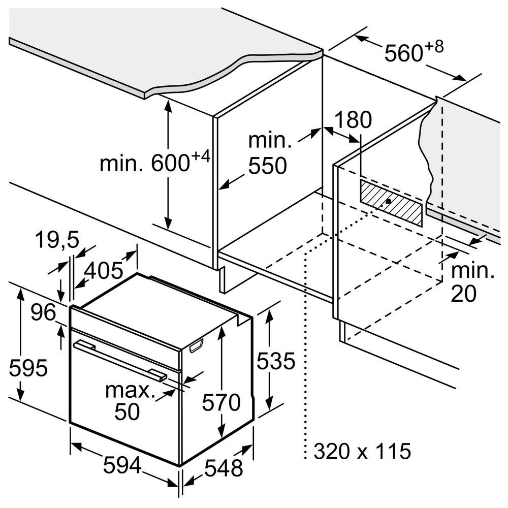 - Požiadavky na veľkosť inštalácie (dnes x š x v): 585 mm - 595 mm x 560 mm - 568 mm x 550 mm