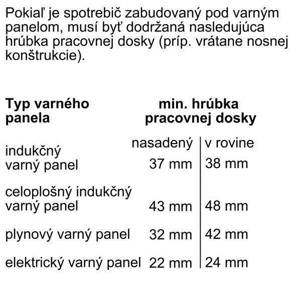 - teplota skla dvierok max. 40 ° C (merané uprostred skla pri nastavení rúry na horný / spodný ohrev 180 ° C po hodine prevádzky)