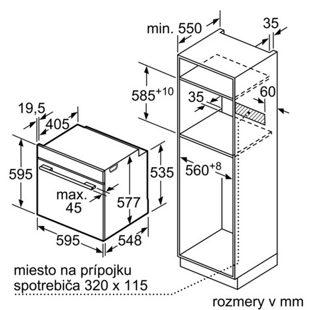 - rozmery spotrebiča (mm) 595 x 595 x 548 mm