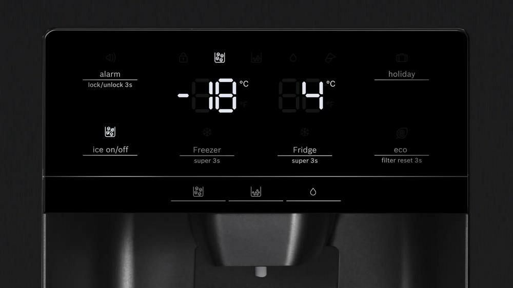 - Voľne stojaca americká chladnička v čiernom dizajne