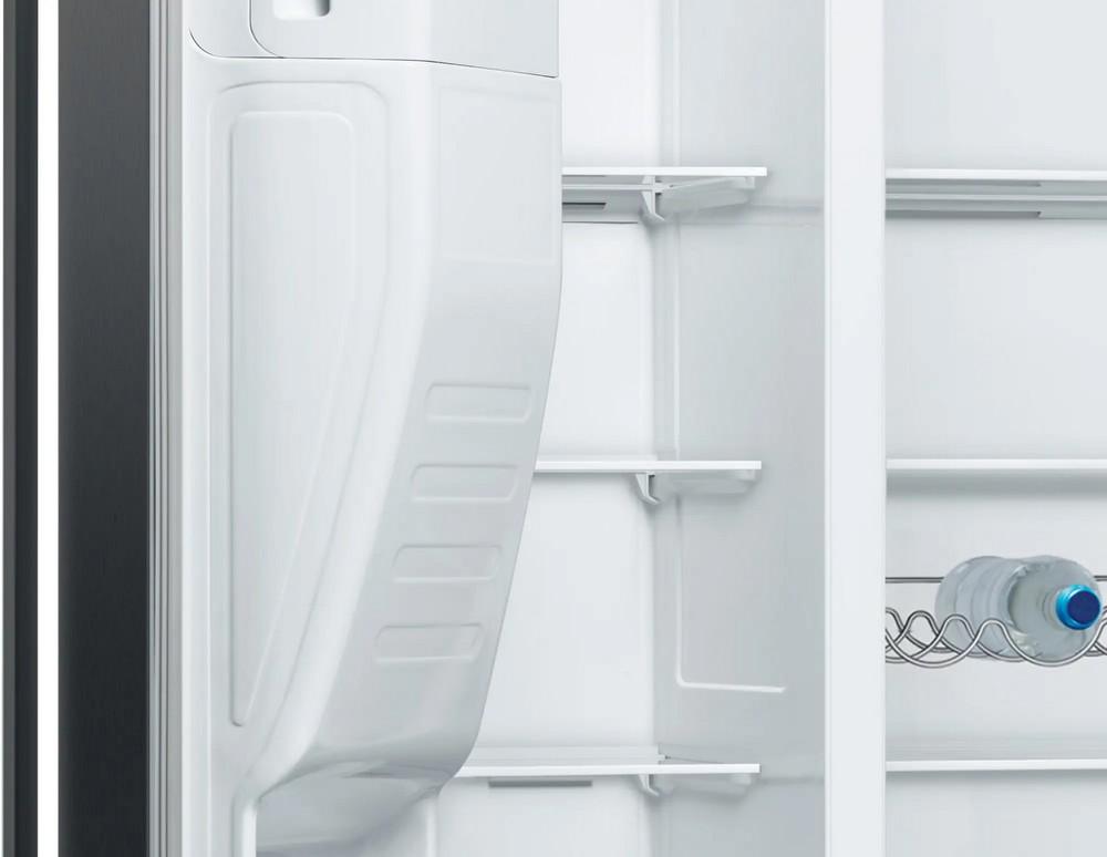 Americká chladnička, Celkový úžitkový objem 562 l, Spotreba el. energie 323 kWh/rok, LED osvetlenie, Trieda mrazenia ****, Hlučnosť 42 dB
