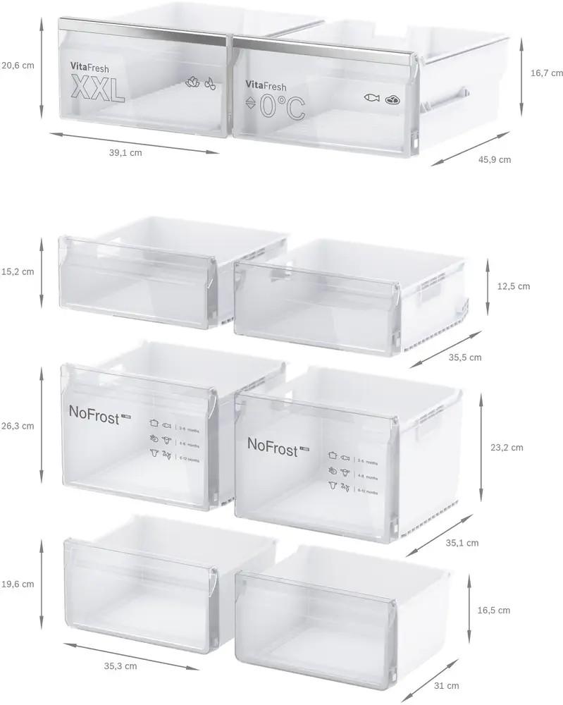 - 1 zásuvka VitaFresh na kolieskách s reguláciou vlhkosti – udrží ovocie a zeleninu dlhšie plnú vitamínov a čerstvú