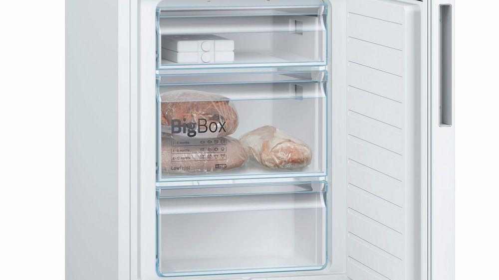 Zásuvka pre praktické usporiadanie už zmrazených potravín alebo potravín o veľkom objeme, napr. ako je torta alebo pizza. Bez ohľadu na to, či sa potrebujete postarať o oslavu narodenín vášho dieťata alebo zmraziť svadobnú tortu – v zásuvke BigBox nájdete dosť priestoru pre veľké zmrazené potraviny.