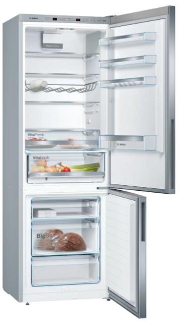 Kombinovaná chladnička Bosch KGE49AICA v nerezovom prevedení s povrchom AntiFinger Print, svojím vzhľadom skvelo zapadne do akéhokoľvek interiéru kuchyne. Disponuje integrovaným madlom a poskytne dostatok priestoru s celkovým úžitkovým objemom až 413 litrov. Poteší tiež veľmi tichou prevádzkou, ktorá dosahuje len 38 dB.