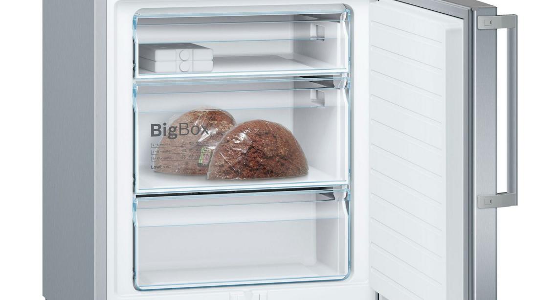 Zásuvka na extra hlboké zmrazenie potravín pre ukladanie zmrazených potravín na seba alebo veľké balenia zmrazených potravín, ako je gateaux alebo pizza. Bez ohľadu na to, či sa potrebujete postarať o oslavu narodenín vášho dieťata alebo zmraziť svadobnú tortu – v zásuvke BigBox nájdete dosť priestoru pre veľké zmrazené tovary.