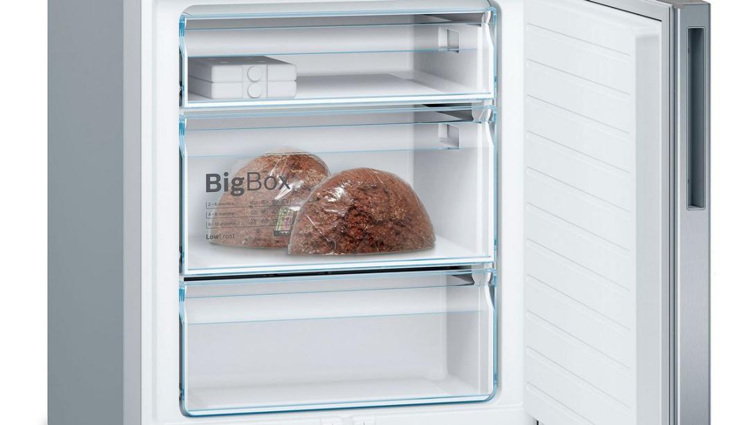 Zásuvka pre praktické usporiadanie už zmrazených potravín alebo potravín o veľkom objeme, napr. ako je torta alebo pizza. Bez ohľadu na to, či sa potrebujete postarať o oslavu narodenín vášho dieťata alebo zmraziť svadobnú tortu – v zásuvke BigBox nájdete dosť priestoru pre veľké zmrazené potraviny.