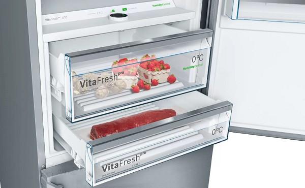 - VarioZone: viac flexibility vďaka variabilne umiestniteľným skleneným poličkám a priehradkám v mraziacom priestore.