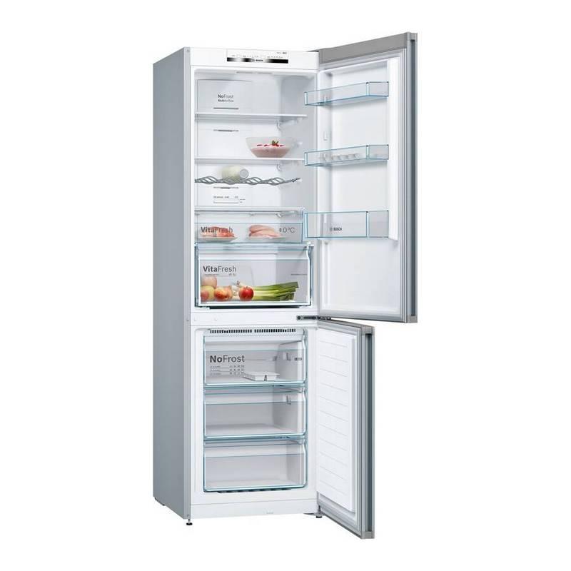 Nerezový čistý vzhľad chladničky s mrazničkou Bosch KGN36VLED nebude to jediné, čím si vás spotrebič získa. Inovatívne funkcie a technológie robia z chladničky veľkého pomocníka do každej domácnosti. S technológiou NoFrost už nebudete musieť chladničku nikdy odmrazovať. Pre dlhšiu čerstvosť potravín sú tu zásuvky VitaFresh. Ovocie a zelenina je v priehradke, kde je možná regulácia teploty. Čerstvému mäsu a rybám sa bude dobre dariť v zásuvke VitaFresh, ktorá stráži ideálnu teplotu okolo 0 °C. V policiach EasyAccess Shelf ľahko skontrolujete obsah, police sa dajú ľahko vysunúť. Chladiaci priestor má objem 237 l a mraziaci 89 l.
