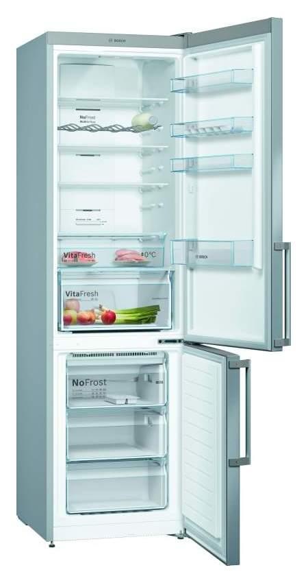 Voľne stojaca chladnička s mrazničkou dole 203 x 60 cm Nerez s povrchom AntiFingerPrint a priehradkou VitaFresh: udrží vaše potraviny dlhšie čerstvé.