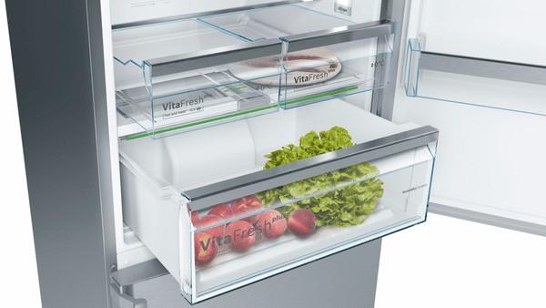 Chladnička Bosch KGN49AIDP disponuje technologií VitaFresh, která udržuje potraviny déle čerstvé. Přihrádka je vybavena regulací vlhkosti pro delší čerstvost ovoce, zeleniny. Při skladování masa a ryb poskytuje optimální teplotu. Potraviny budou mít až 3× delší čerstvost.