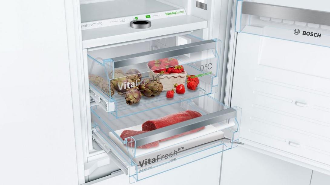 Zabudovateľná kombinácia chladnička/mraznička s VitaFresh Pro: vďaka ideálnym skladovacím podmienkam zostanú vaše potraviny až 3x dlhšie čerstvé a plné vitamínov.