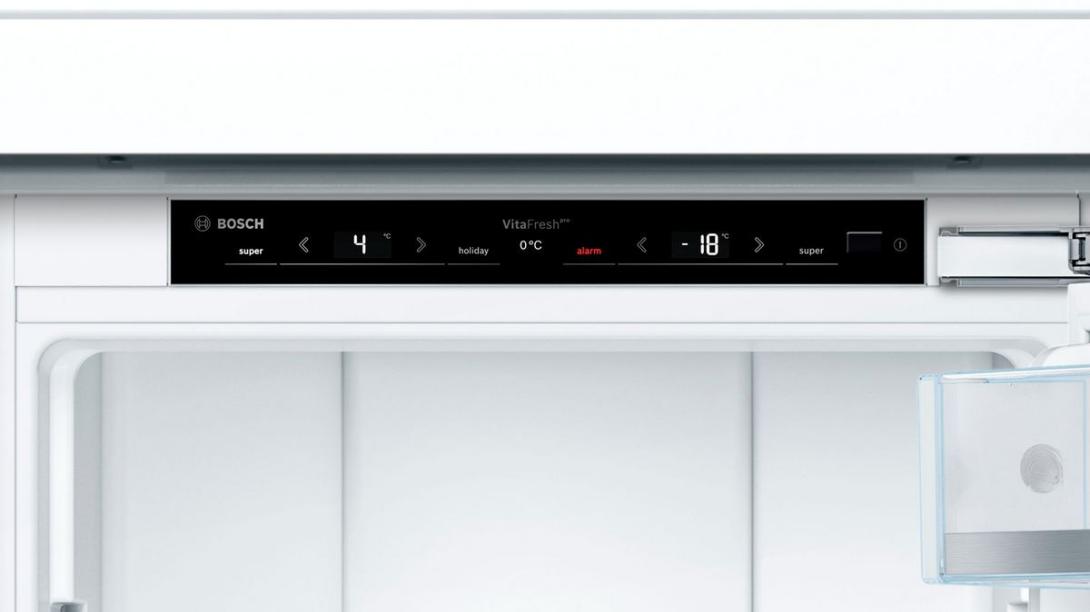 Inteligentná invertorová technológia zabezpečuje inteligentnú interakciu medzi senzormi, elektronikou a kompresorom. Senzory neustále monitorujú teplotu vo vnútri zabudovateľnej chladničky a v jej okolí. Elektronický systém okamžite zaznamená prípadné zmeny a kompresor prispôsobí svoj výkon aktuálnej situácii.
