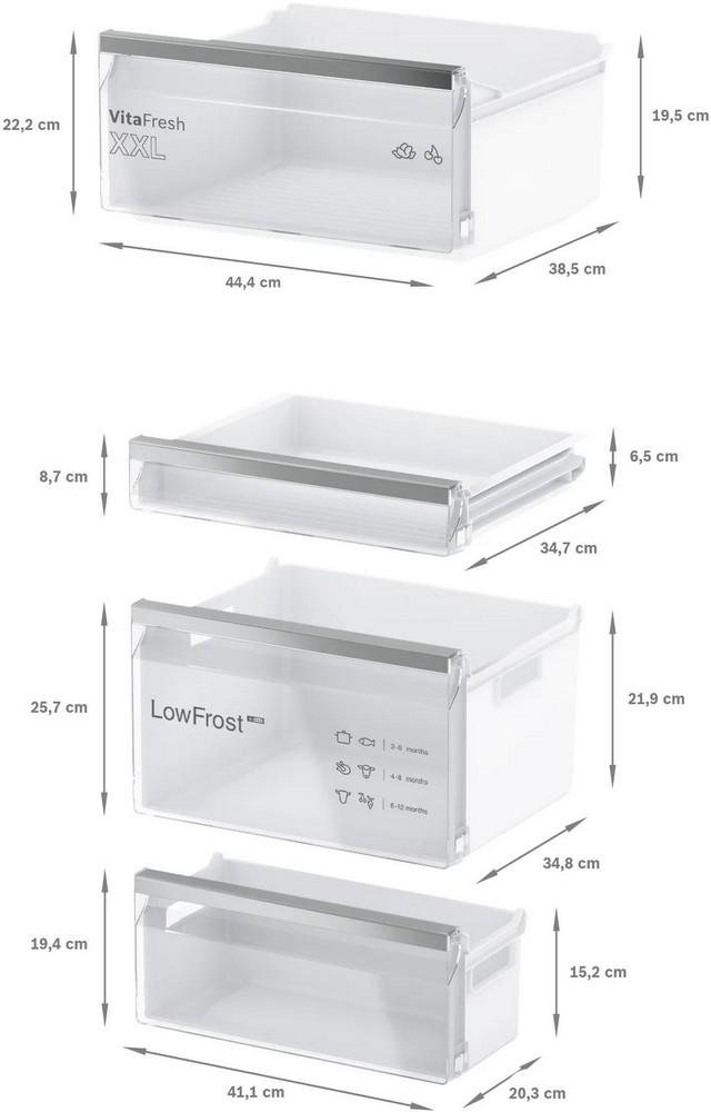 Vďaka vyšším bočným stenám ponúkajú priehradky vo dverách s optimalizovaným objemom viac priestoru a stability. Predmety ako malé fľašky či poháre už len tak ľahko nevypadnú a neprevrátia sa. Priehradky vďačia za svoj vzhľad jedinečnej technológii spracovania a dodávajú sa v elegantnej farbe.