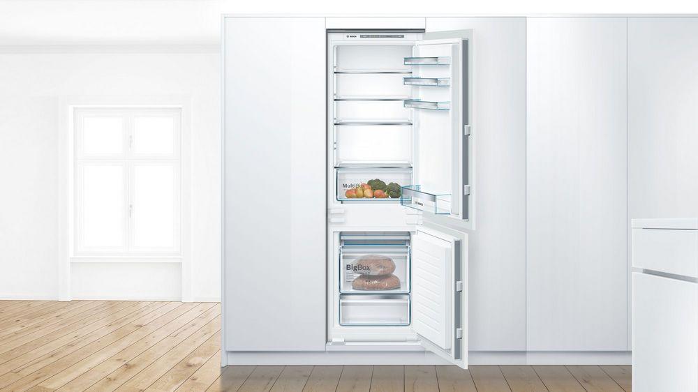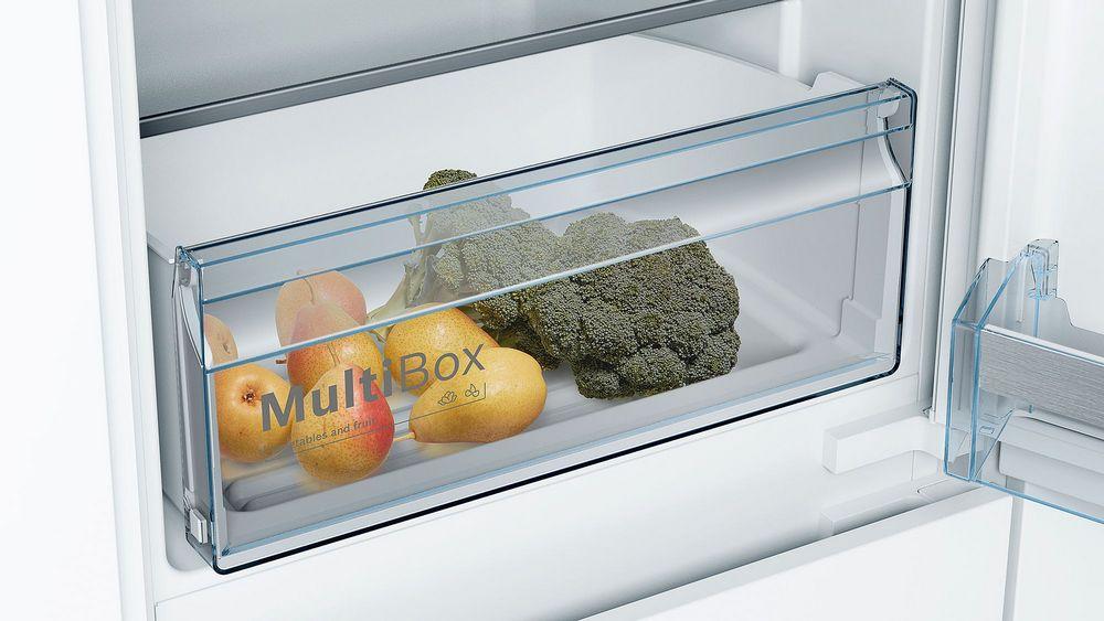 Kombinácia chladnička/mraznička s elektronickou reguláciou teploty a priehradkou MultiBox: umožňuje nastaviť teplotu presne a jednoducho.