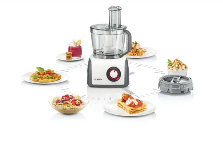 - Veľká priehľadná plastová miešacia misa s objemom 3,9 l pre 750 g múky a ďalších prísad (max 1,5kg cesta), vrátane vrchnáka s lievikom a plniacim otvorom.