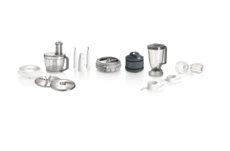 - Krájací obojstranný kotúč (silný a tenký) a strúhací obojstranný kotúč (hrubý a jemný) z nehrdzavejúcej ocele.