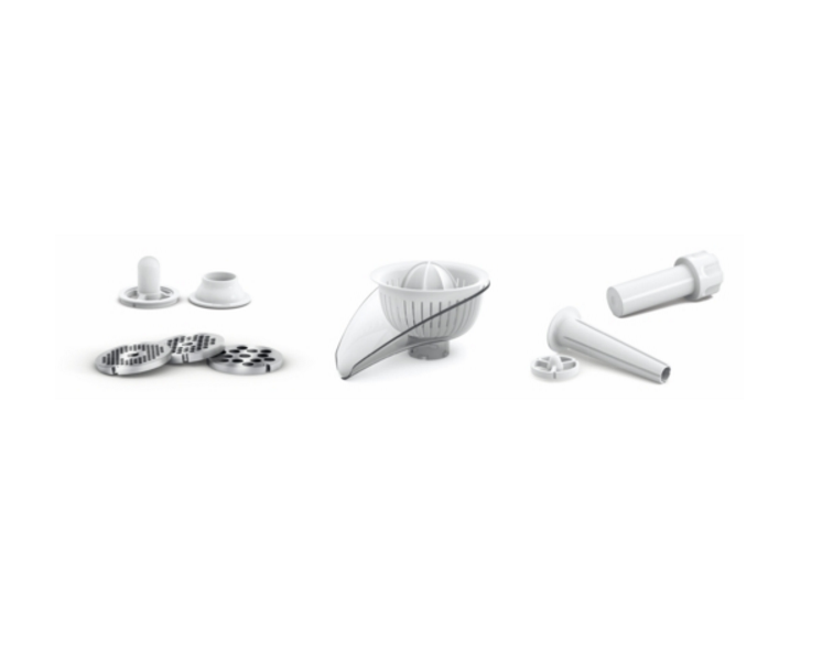 - Široká paleta možností pri príprave jedla - nádstavec na kebbe, nádstavec na plnenie klobás a lis na citrusy.