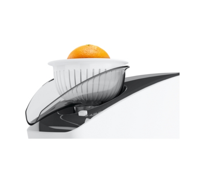 - Svieži design s praktickým madlom, s priestorom pre uloženie dierovaných diskov a kábla, a s možnosťou nasadenia lisu na citrusy.