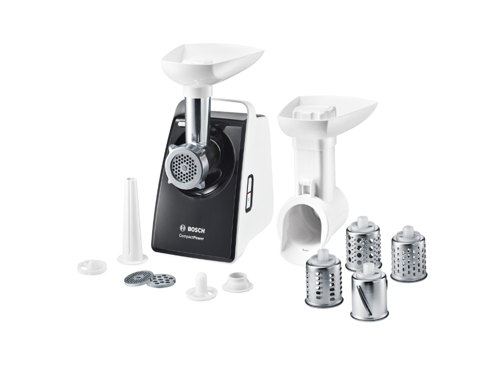 - Mlynček na mäso Bosch CompactPower: všestranný a kompaktný pomocník do kuchyne s viac ako 15 funkciami.