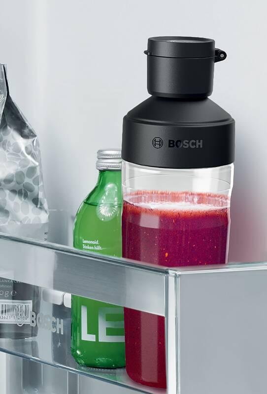 Praktická vákuová fľaša 2Go sa stane vaším spoločníkom na ceste do práce alebo do školy. Odolná tritanová fľaša, ktorá je pachovo neutrálna a odolná proti rozbitiu, pojme až 600 ml tekutín. Je to veľmi jednoduché. Namixujte si zdravé smoothie alebo džús, nalejte do fľaše a zavákuujte pomocou vákuovacieho systému Bosch. Môžete využiť vákuovacie nadstavce z radu ErgoMixx, MaxoMixx alebo ručný šľahač s vákuovacím systémom.