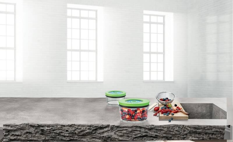 Sada vákuových dóz, Zavákuované potraviny vydržia až 2× dlhšie čerstvé, Objem 1,5 l a 750 ml, Vyrobené z odolného tritanu, Možno umývať v umývačke riadu
