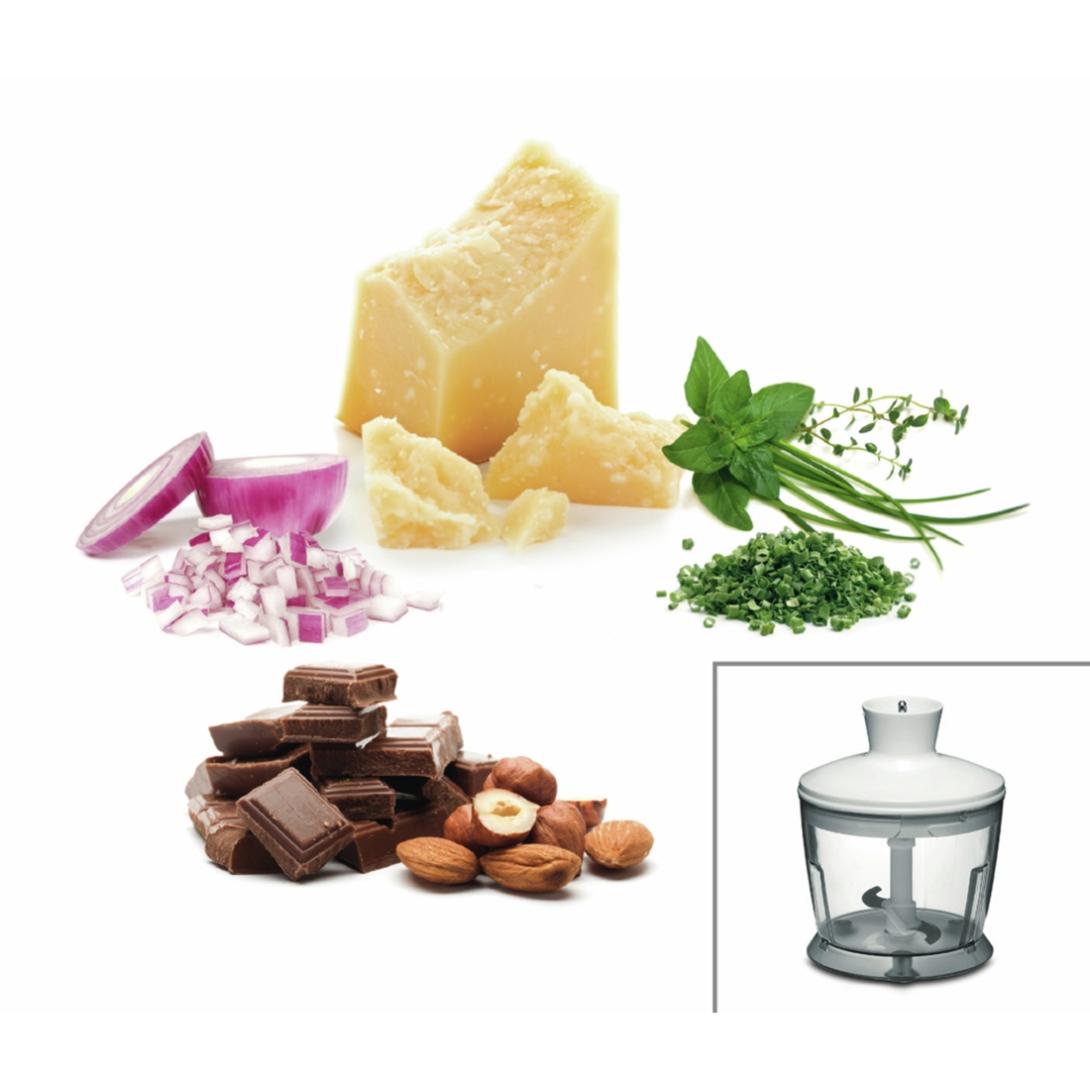- Seká bylinky, parmezán, orechy a iné tvrdé prísady ľahko a rýchlo: sekáčik je perfektný na prípravu pesta, suga i ďalších.