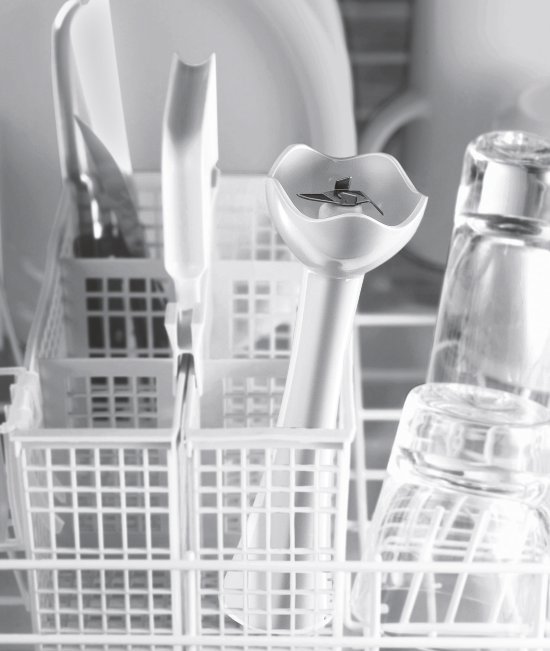 Určite oceníte, že vyberateľná mixovacia noha je z tepelne odolného plastu a ochranný kryt v tvare zvončeka, ktorý zabraňuje odstriekavanie a uľahčuje čistenie. Súčasťou príslušenstva je aj transparentný mixovacia nádoba s mierkou.