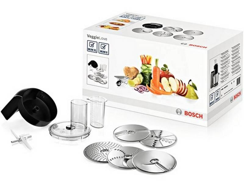 - SET VeggieLove s priebehovým krájačom pre sekanie, krájanie, strúhanie vrátane krájača na prípravu zeleniny pre ázijskú kuchyňu a disk na krájanie zemiakov na prípravu vegetariánskych jedál.