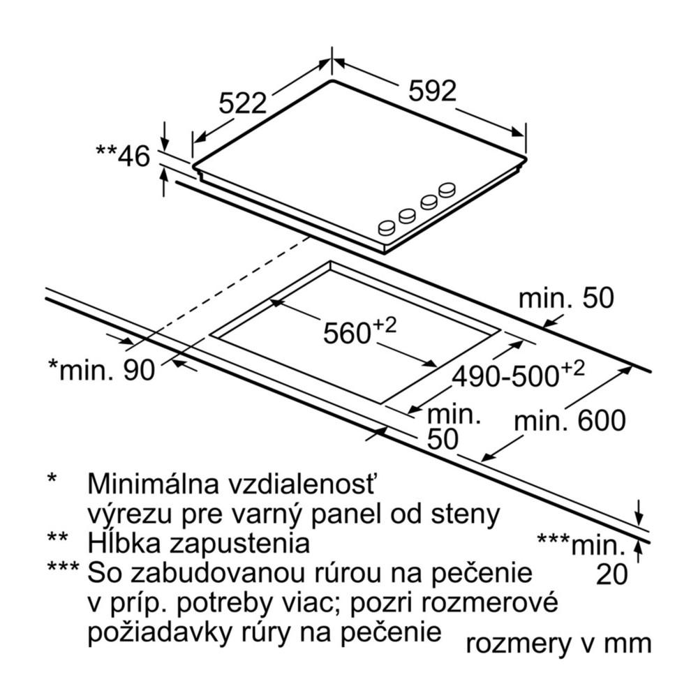 - rozmery pre inštaláciu: (V x Š x H) 46 mm x 560 mm x 490 mm