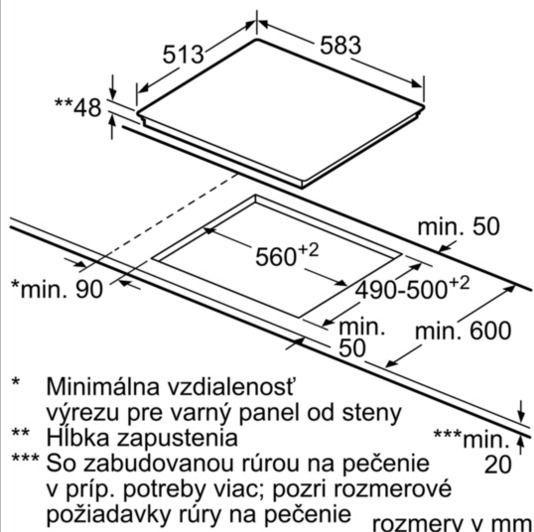 - rozmery pre inštaláciu: (v/š/h) 48 mm x 560 mm x 490 mm