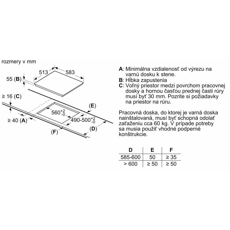 - Min. hrúbka pracovnej dosky: 1,6 cm