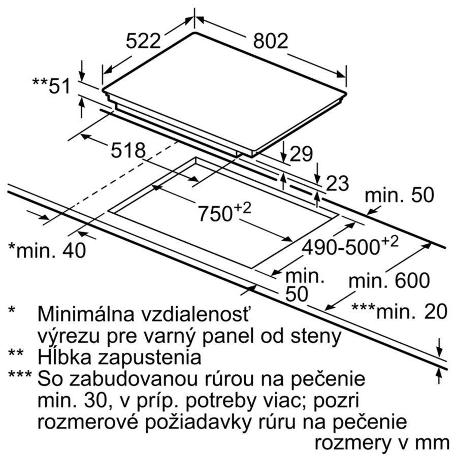 - rozmery pre inštaláciu (V x Š x H): 51 mm x 750 mm x 490 mm