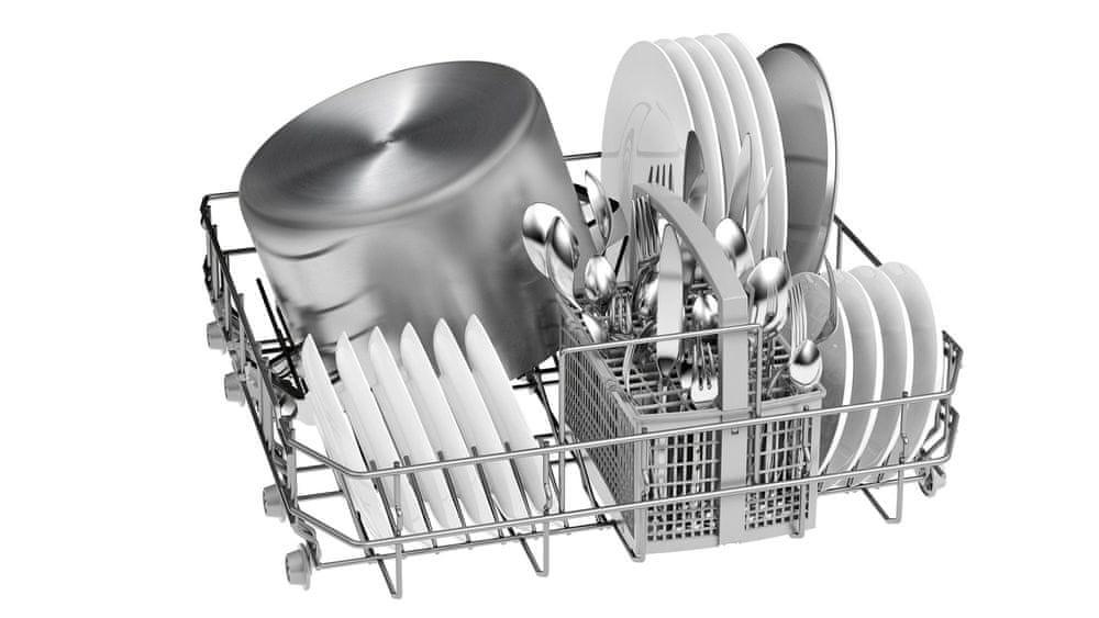 - Výškovo nastaviteľný horný kôš – ponúka extra miesto, zvlášť pre vysoké riady