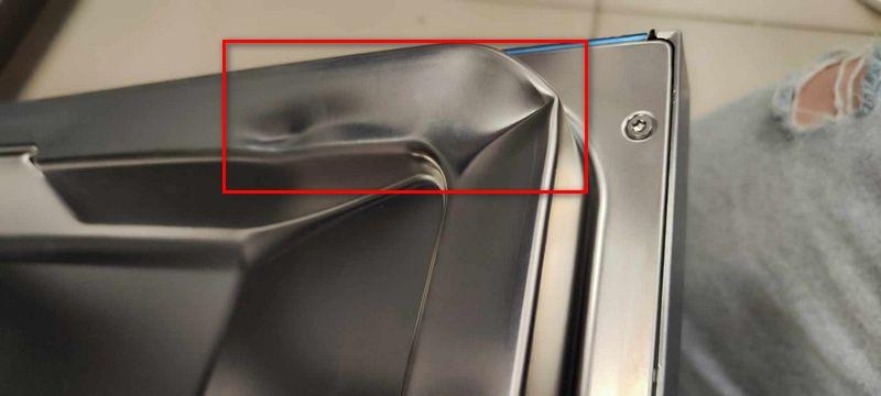 Poškodenie: Dvierka poškodené, zvonka ľavá strana jemne potlačená, zvnútra rohy deformované, úchytky priborovej zásuvky zlomené /Viď. foto/
