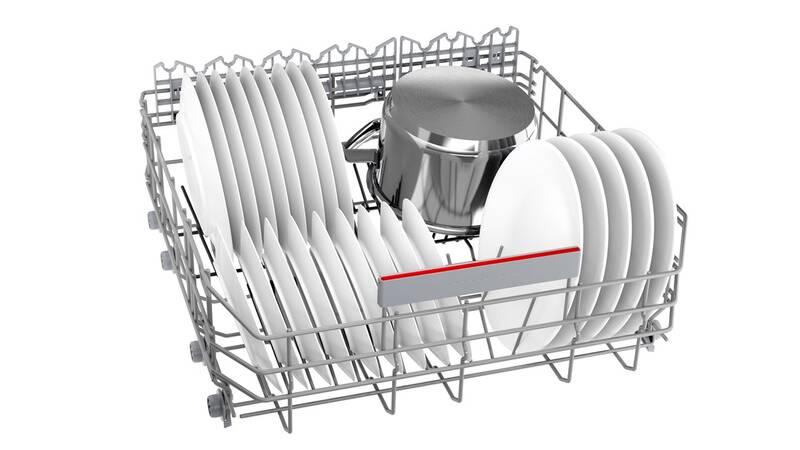 Vstavaná umývačka riadu Bosch SMD6TCX00E patrí medzi inteligentné spotrebiče. Aplikácia Home Connect vám pomôže uľahčiť každodenný program. Vďaka funkcii Silence on demand môžete potlačiť hluk umývačky a odpočívať v kľude. Umývačka Bosch zvládne umyť až 14 súprav riadu. Na flexibilné usporiadanie je tu systém košov Flex a príborová zásuvka VarioDrawer. Systém Rackmatic dovoľuje výškovo nastaviť horné koše. Informáciu o priebehu umývačky ukazuje červený svetelný bod InfoLight premietaný na podlahu.
