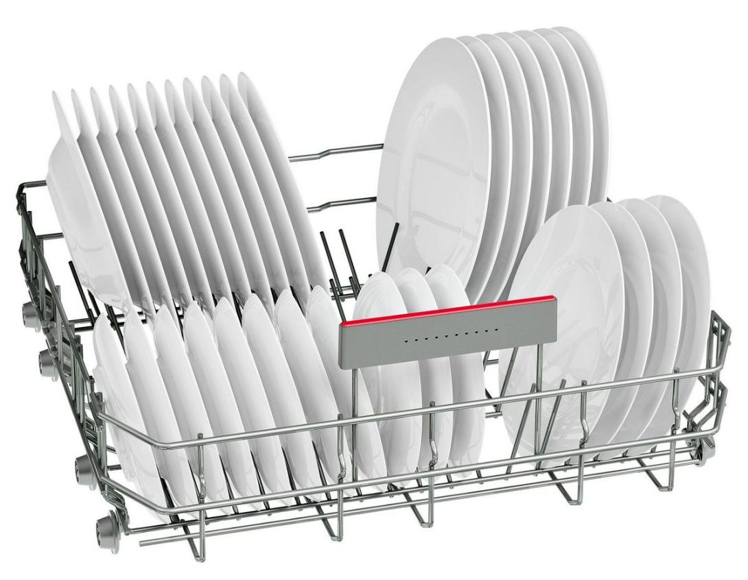 Asi si dokážete predstaviť, ako je frustrujúce raz naloženú umývačku špinavým riadom znovu vykladať a preskládať, pretože do nej chcete niečo pridať. Systém košov VarioFlex zabezpečí, že žiadna poháre, tanier alebo hrniec nezostanú opomenuté. Vďaka štyrom radám sklopných tŕňov v dolnom koši je tam dostatočný priestor pre väčšie hrnce a riady. Horný kôš obsahuje štyri pohyblivé prvky (dva rady sklopných tŕňov a dve odkladacie plochy) a celý systém tak ponúka priestor pre poháre, taniere, šálky a príbory, ako aj pre poháre na víno a hrnce. Vyberte si umývačku riadu, ktorá má vždy miesto navyše.