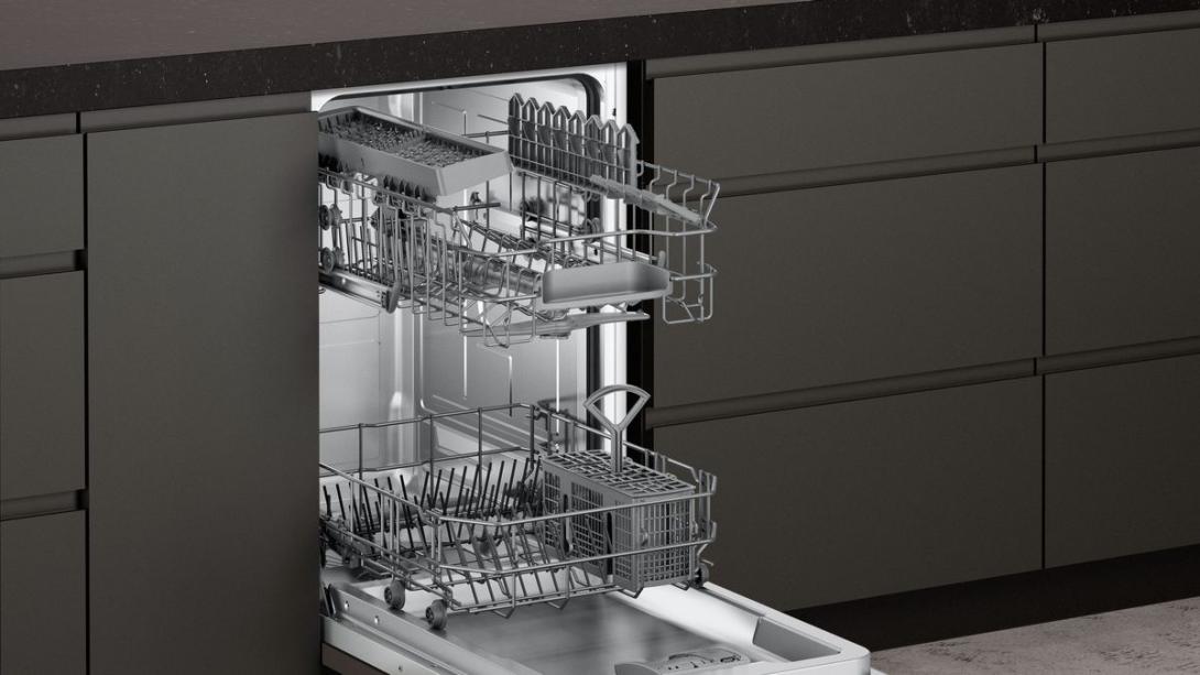 - Výškovo nastaviteľný horný kôš: ponúka extra miesto, zvlášť vhodné pre vysoký riad.