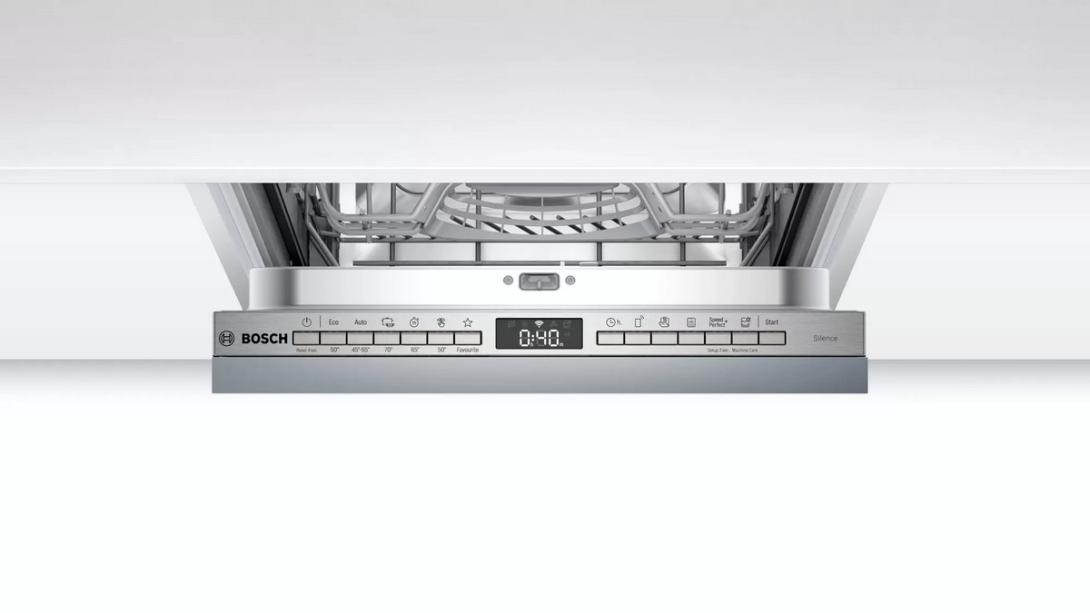 Vstavaná umývačka riadu, 6 programov: Eko 50 °C, Auto 45-65 °C, Hrnce 70 °C, Hodinové 65 °C, Tichý 50 °C, Obľúbený, 4 doplnkové funkcie: Home Connect - štart na diaľku, EfficientDry, Intensive Zone, SpeedPerfect Plus