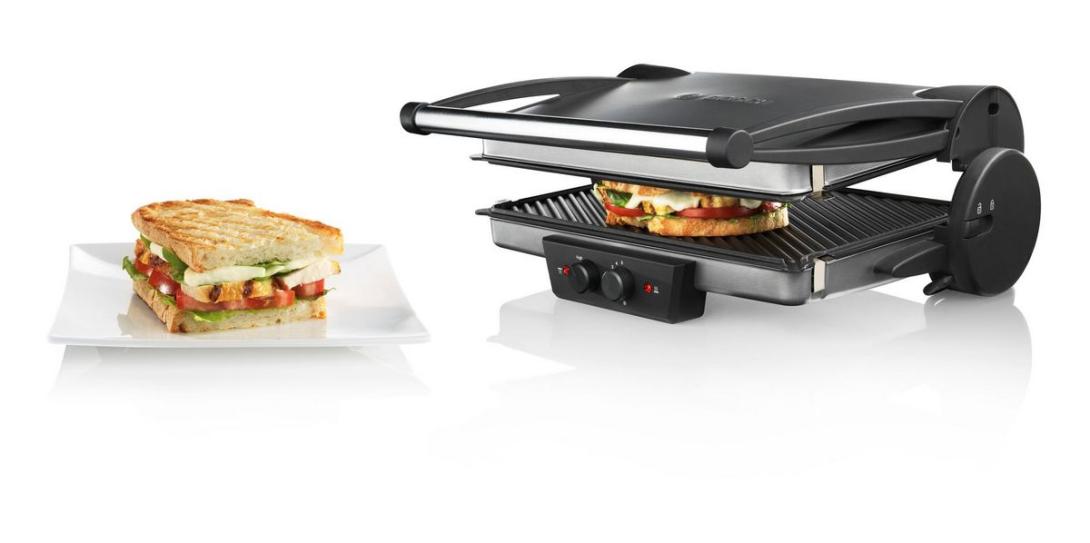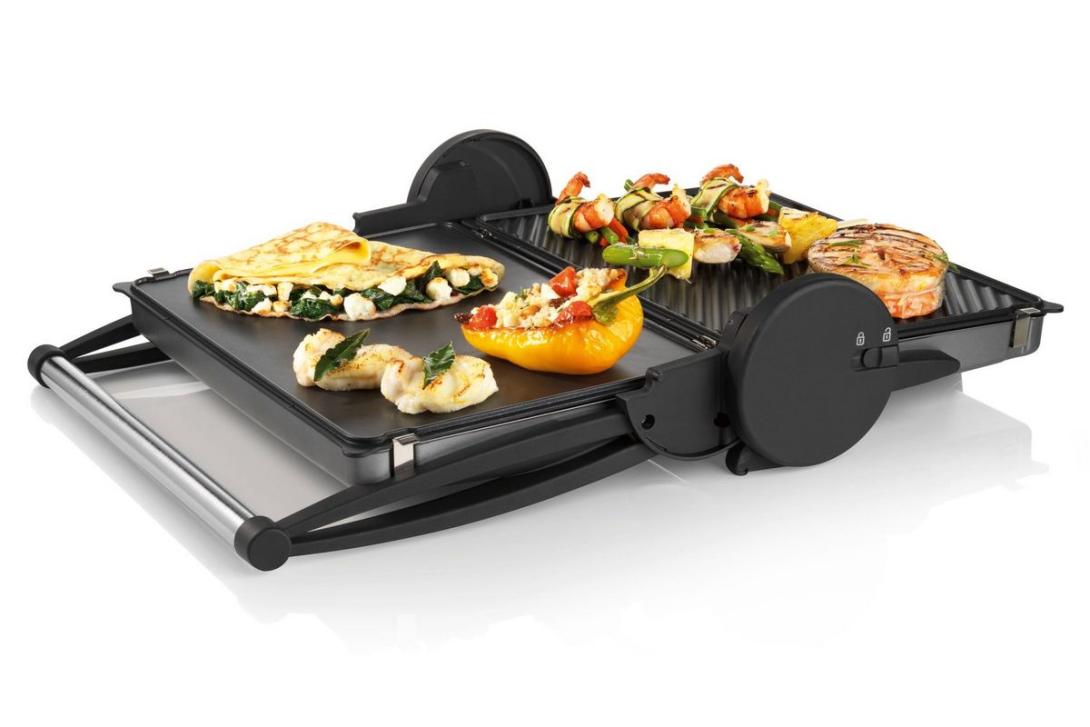 Zdravá kuchyňa, rýchla kuchyňa, lahodná kuchyňa - tri grilovacie pozície kontaktného grilu ponúkajú prakticky neobmedzené možnosti skúšania kreatívnych nápadov. Zatvorený ako kontaktný gril, otvorený ako stolný gril, horný a dolný ohrev s funkciou pečenia, gratinovania alebo ohrievania – na opekanie, grilovanie, gratinovanie alebo ohrievanie. 'Šťavnaté steaky, chutné hamburgery, chrumkavé a do zlatista opečené ražniči, hrianky, sendviče a talianske panini alebo focaccia – vychutnajte si všetko, čo máte radi. Chutné, nízkokalorické a zdravé.