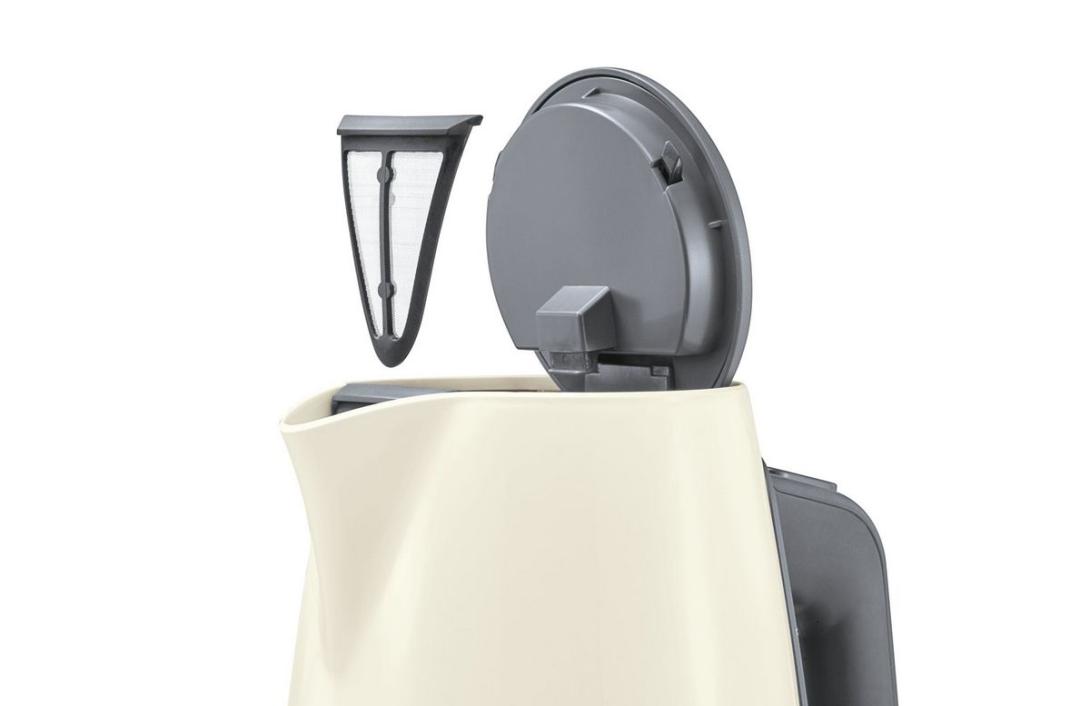 - Trojité zabezpečenie: automatické vypnutie, ochrana proti prehriatiu a vyvretiu vody, vypnutie pri zdvihnutí kanvice zo základne.