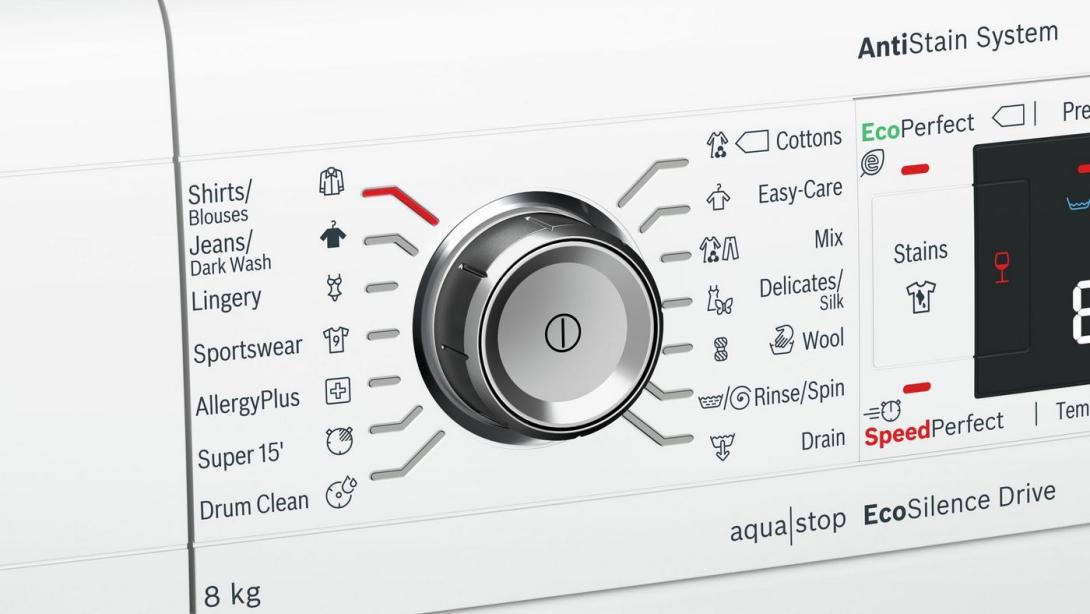 Systémom AntiStain bez problémov odstránite 16 najodolnejších škvŕn od čokolády cez trávu až po červené víno. Práčka nastavuje automaticky teplotu, pohyb bubna a čas namočenia potrebný na ošetrenie daných škvŕn ešte pred spustením zvoleného programu.