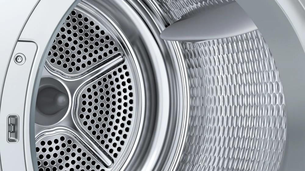 - Systém šetrného sušenia SensitiveDrying – veľký nerezový bubon so špeciálnou štruktúrou a unášačmi s mäkkým povrchom pre jemnú starostlivosť o bielizeň