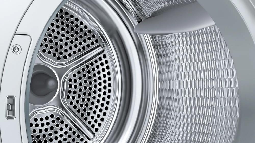 - systém šetrného sušenia SensitiveDrying: veľký nerezový bubon so špeciálnou štruktúrou a unášačmi s mäkkým povrchom pre jemnú starostlivosť o bielizeň