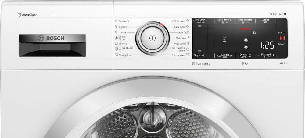 Sušička bielizne, Kapacita bubna 9 Kg, Vstavaný displej Áno, Typ sušenia Kondenzácia, Hlučnosť (sušenie) 62 dB