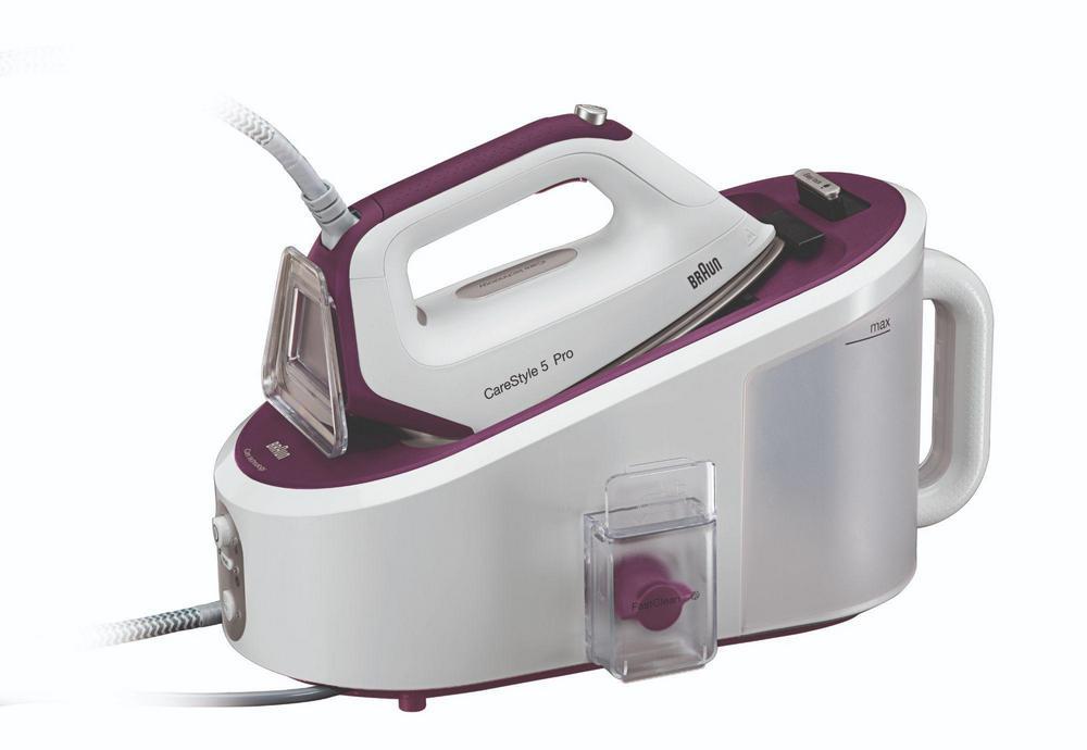 Inovovaná rada CareStyle 5 a 5 Pro prináša výkonné parné generátory, ktoré ponúkajú skvelú kombináciu vlastností: od unikátnej nahor zahnutej žehliacej plochy 3D FreeGlide, inteligentnej technológie iCare so správnou teplotou pre všetky druhy látok až po pohodlný a rýchly systém odvápňovania Ultimate FastClean. Vďaka najľahšej žehličke Braun, vysokému parnému rázu a tlaku, zvládne vyžehliť i veľmi pokrčenú bielizeň bez námahy. 2 litrová vyberateľná nádržka na vodu vám ušetrí dlhé hodiny žehlenia bez zbytočného odbiehania od žehliacej dosky. Ušetrite s CareStyle 5 až 50% času počas žehlenia na to, čo máte radi.