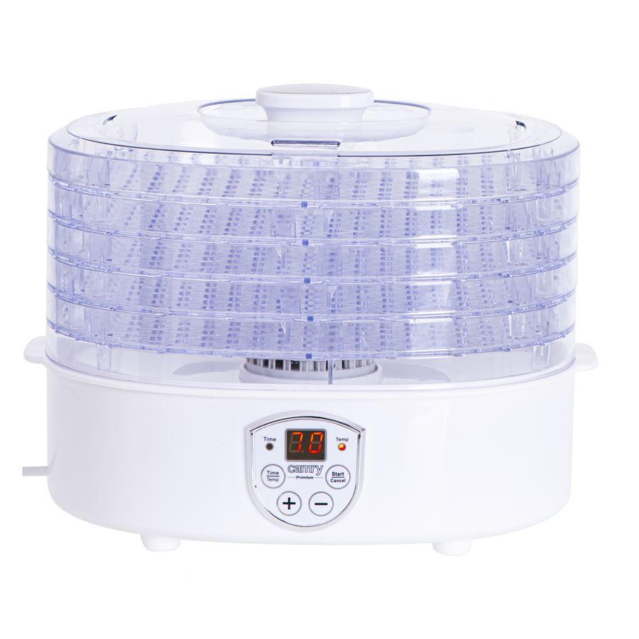 Zdravé občerstvenie? Áno! Každý z nás rád občas zje občerstvenie pri sledovaní filmov, trávení rodinných večerov alebo pri strese, ktorý nás núti hľadať „niečo sladké“. Stačí však použiť sušičku potravín a môžete si vychutnať sladké a slané občerstvenie bez toho, aby ste sa cítili vinní alebo poškodzovali svoje zdravie nezdravými potravinami. Sušička Camry CR6659 v niekoľkých jednoduchých krokoch vysuší vaše obľúbené bylinky, zeleninu, ovocie alebo huby. Zariadenie pozostáva z piatich priehľadných podnosov, ktoré uľahčujú kontrolu procesu sušenia potravín. Regulátor času a teploty zabezpečujú efektivitu a rovnomerné sušenie potravín.