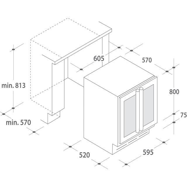 Vstavaná vinóteka, Vinotéka ďalej disponuje 10 policami, dymovým sklom a nastaviteľnými nožičkami.